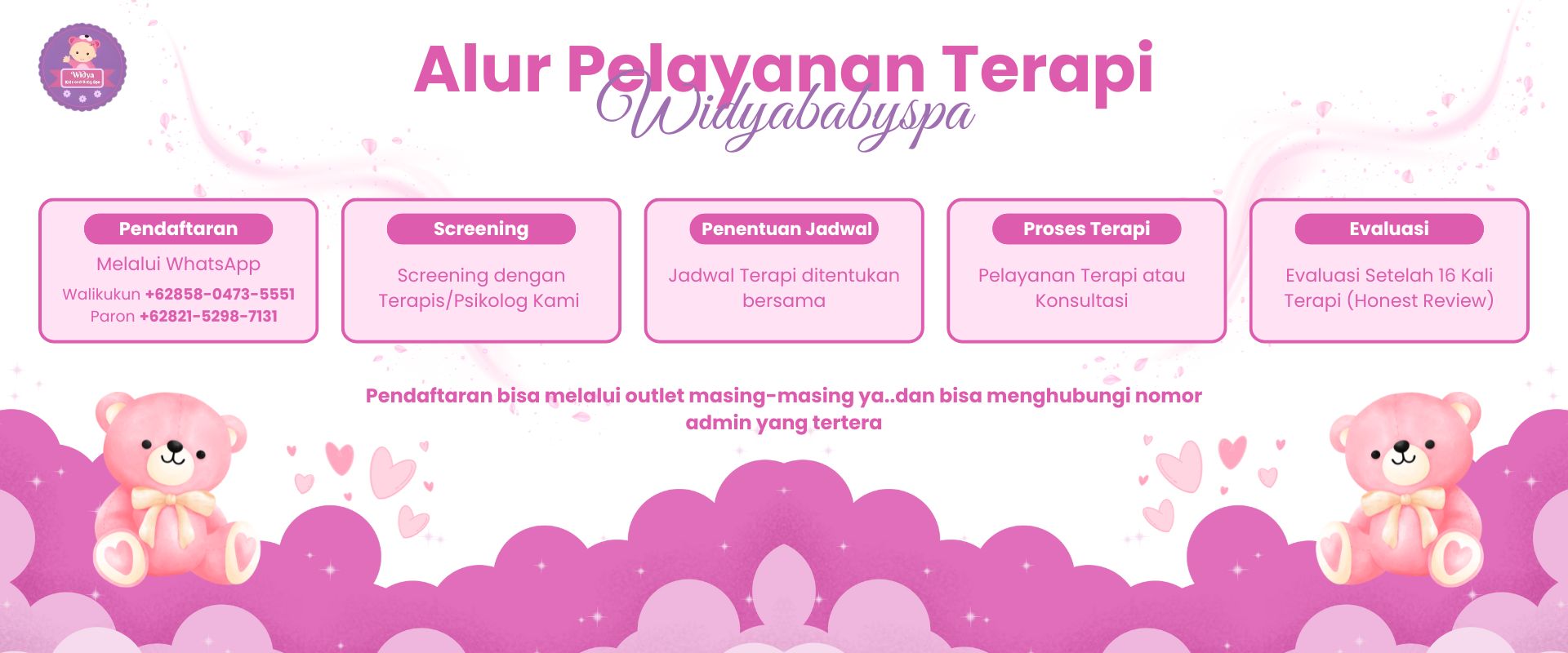 Widyababyspa adalah pusat layanan spa bayi profesional yang menawarkan pijat bayi (baby massage) dan hidroterapi (baby swim) untuk mengoptimalkan tumbuh kembang si kecil, meningkatkan kualitas tidur, dan mempererat ikatan orang tua dan bayi.